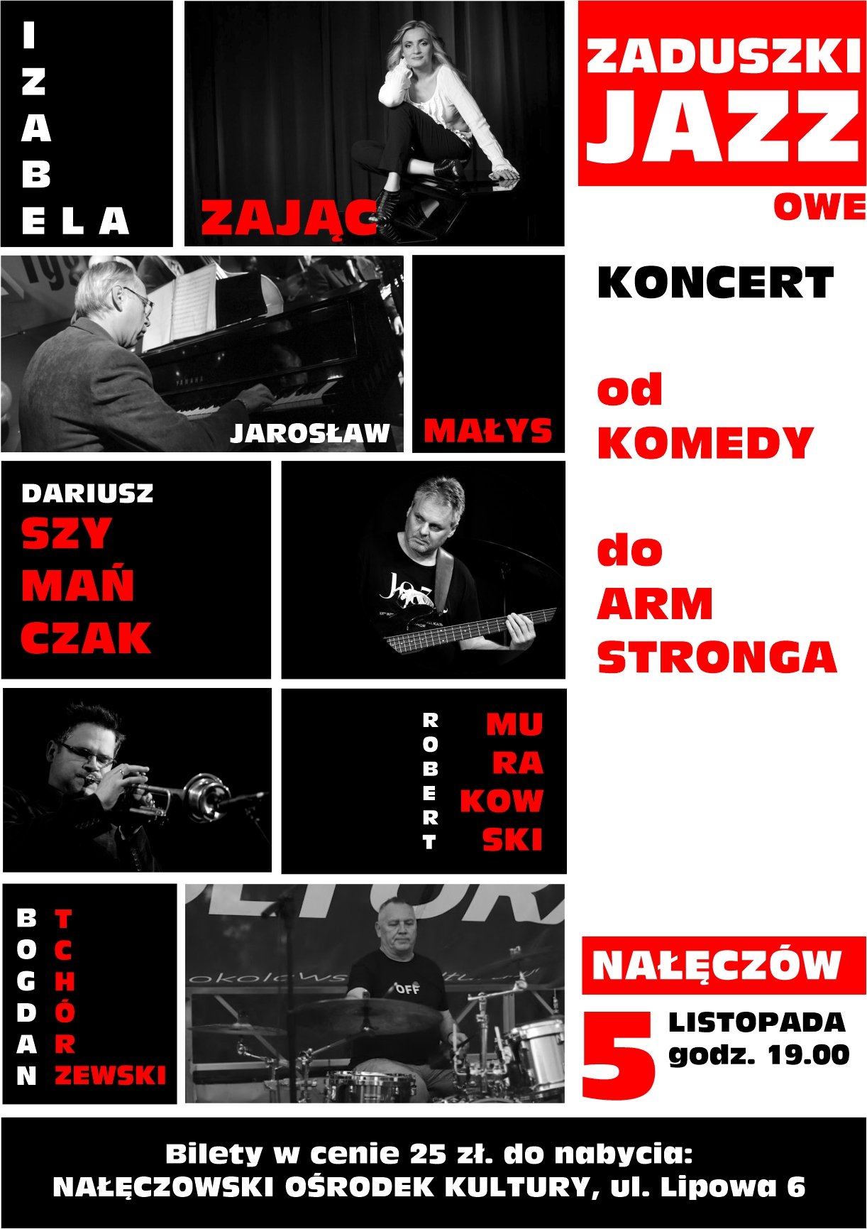 - Wydarzenie ma na celu upowszechnianie na terenie gminy Nałęczów ambitnej muzyki oraz upamiętnienie wybitnych jej twórców. W tym roku w koncercie zatytułowanym „Od Komedy do Armstronga”, który odbędzie się o godz. 19.00 w Sali widowiskowej Nałęczowskiego Ośrodka Kultury, wystąpią znani i popularni w świecie jazzu muzycy. Iza Zając – śpiew, Jarosław Małys - piano, Dariusz Szymanczak – gitara basowa, Robert Murakowski – trąbka, Bogdan Tchorzewski – perkusja - mówi Łukasz Król, dyrektor NOKu.