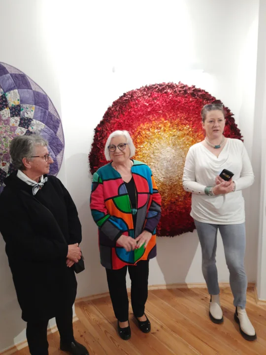 - Szyję patchowrki od ponad 40 lat. Nigdy w życiu nie widziałam okrągłych patchworków, to pierwsza tego typu wystawa na świecie. Trudno jest je uszyć. Ta wystawa znajduje się w trzecim miejscu. Wcześniej dzieła prezentowaliśmy w Warszawie i Łomiu - mówiła do zgromadzonej publiczności Anna Sławińska, jedna z autorek prac.