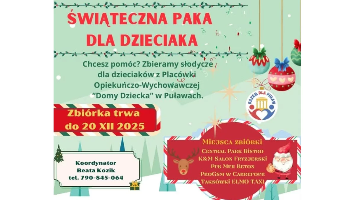 Zbiórka potrwa do 20 grudnia. Każdy, nawet najmniejszy gest, ma wielkie znaczenie i może sprawić, że nadchodzące święta dla dzieci z domu dziecka będą choć trochę bardziej wyjątkowe.