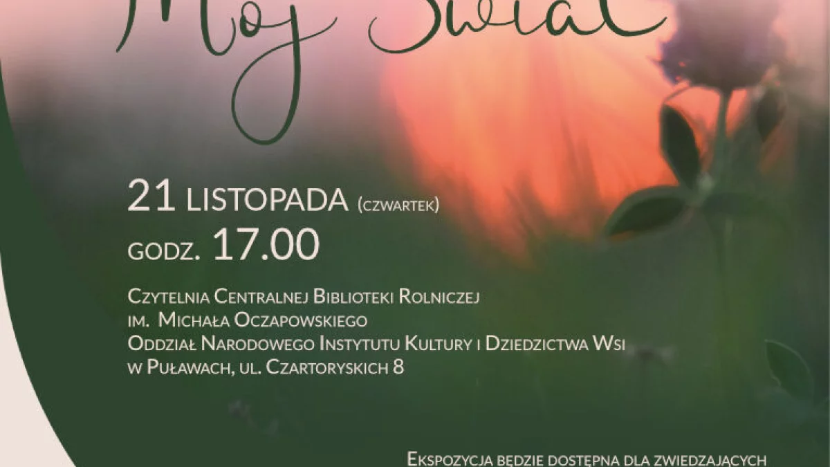 Tytuł wystawy, jaką będą mieli szansę obejrzeć mieszkańcy Puław brzmi "Mój Świat". Przedstawia ona fotografie wykonane przez Bożenę Małek. Wystawę będzie można podziwiać do 18 grudnia w godz. 7:30-15:30. Wstęp wolny.