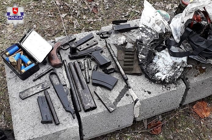 W trakcie przeszukania policjanci znaleźli broń palną, w tym broń ze stojakiem, lunetą i kolbą oraz karabin Mauser. Ponadto w skrytce schowane były różnego rodzaju elementy broni palnej, ponad 50 sztuk amunicji oraz pół kilograma materiału wybuchowego. Na miejsce zostali wezwani saperzy oraz policyjny pirotechnik. Zabezpieczone przedmioty trafiły do badań do laboratorium Kryminalistycznego w Lublinie, a ich właściciel do policyjnego aresztu.