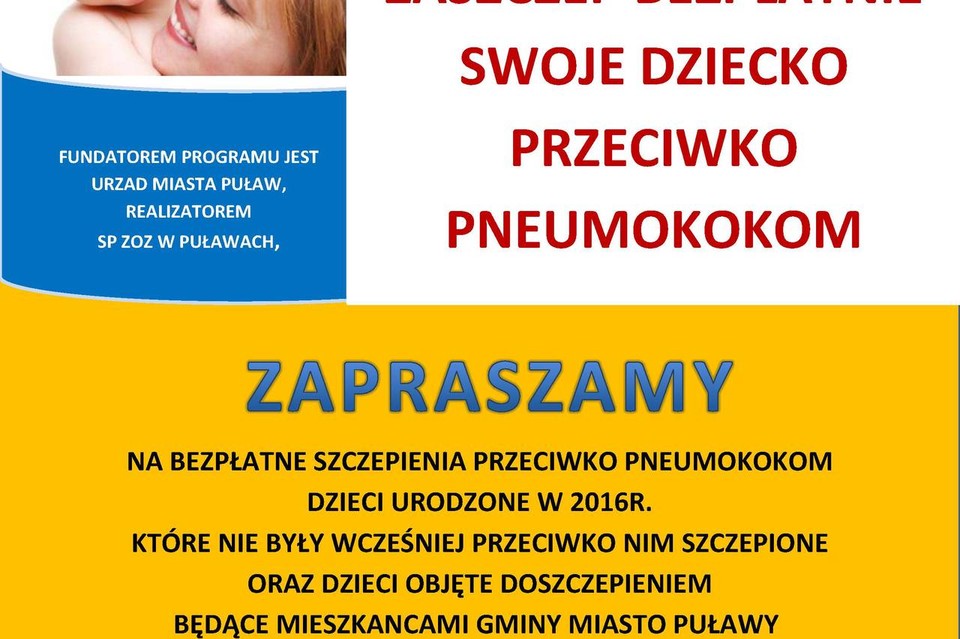 - dzieci urodzone w 2016 roku, zamieszkałe na terenie gminy Miasto Puławy, za wyjątkiem tych, o których mówi rozporządzenie Ministra Zdrowia z dnia 18 sierpnia 2011 roku w sprawie obowiązkowych szczepień ochronnych,