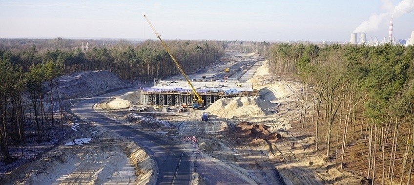 Obecnie w budowie jest jedenaście z trzynastu obiektów inżynierskich, rosną nasypy i pojawiły się warstwy konstrukcji przyszłej drogi wykonane z kruszywa i mas bitumicznych.