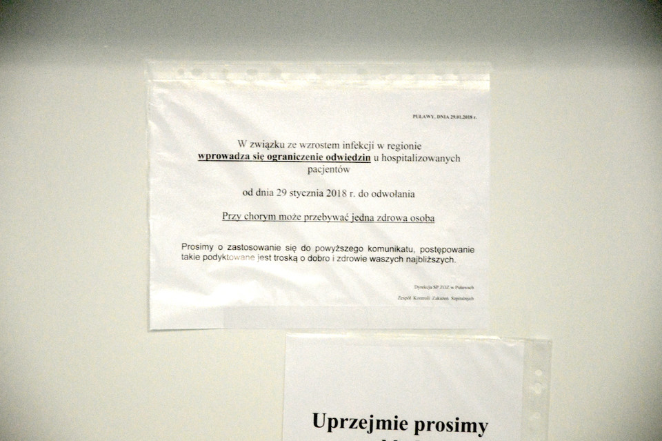 Choć zachorowań w ostatnim czasie jest sporo puławski szpital ograniczył się jedynie liczbę odwiedzin wizyt na oddziałach dziecięcym oraz położniczym i noworodkowym.