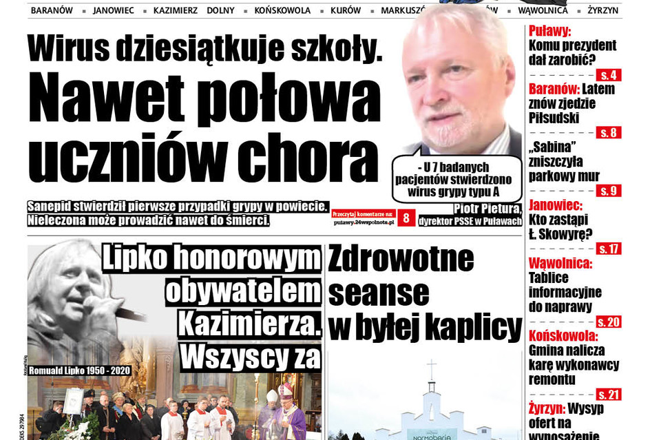 Uczniowie puławskich szkół zaczęli chorować z początkiem lutego. Objawy są podobne. Przeważnie choroba zaczyna się od wysokiej gorączki i kaszlu. Ale pojawiają się także katar i bóle brzucha. Wirus działa podstępnie i szybko. Nawet dzieci, które rano przychodzą do szkoły zdrowe, po kilku godzinach skarżą się na złe samopoczucie i z pierwszymi objawami choroby są odsyłane do domu. Najpierw wirus dziesiątkował społeczność Szkoły Podstawowej nr 11 w Puławach. Pod koniec pierwszego tygodnia lutego na lekcje nie stawiło się 60% z około 800 uczniów. Chorowały nie tylko dzieci, ale i nauczyciele.