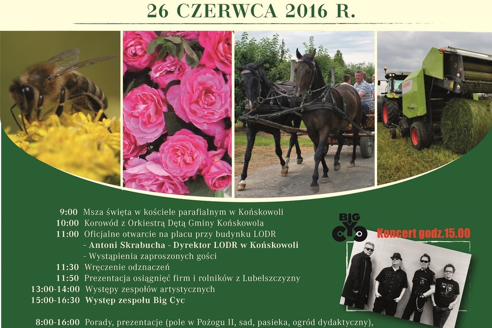 O godz. 10:00 przejdzie korowód z Orkiestrą Dętą Gminy Końskowola. Oficjalne otwarcie imprezy zaplanowane jest na godz. 11:00 na placu przy budynku Lubelskiego Ośrodka Doradztwa Rolniczego. Po wystąpieniu dyrektora LODR i zaproszonych gości odbędzie się wręczenie oznaczeń, prezentacja osiągnięć firm i rolników z Lubelszczyzny.