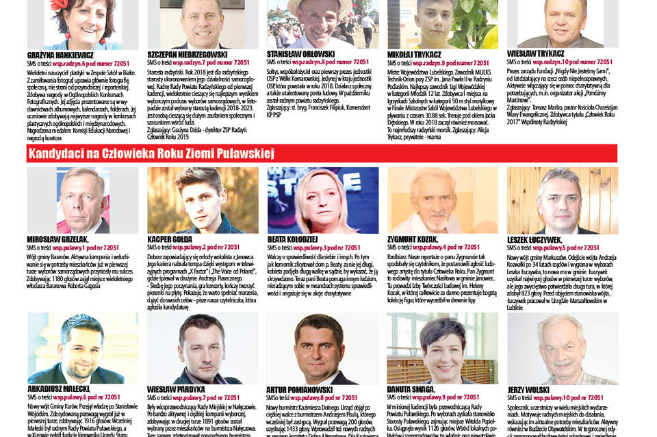 Szukamy ludzi mądrych, nietuzinkowych, odważnych, wskażcie ich. Warto ich docenić - to może pobudzić naśladowców. Nasi czytelnicy będą wybierać Ludzi Roku 2018 z powiatu: bialskiego, lubartowskiego, łęczyńskiego, łukowskiego, opolskiego, parczewskiego, puławskiego, radzyńskiego oraz Ziemi Międzyrzeckiej.