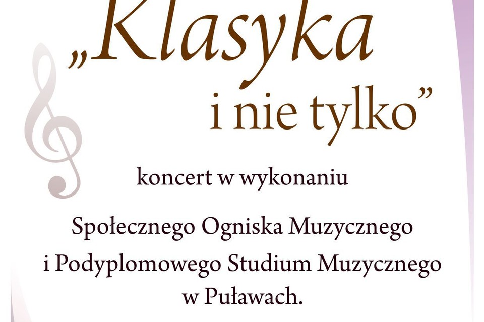 Koncert ''Klasyka i nie tylko" odbędzie się w sobotę, 13 lutego 2016 r. o godz. 16:00 w sali widowiskowej Puławskiego Ośrodka Kultury "Dom Chemika".