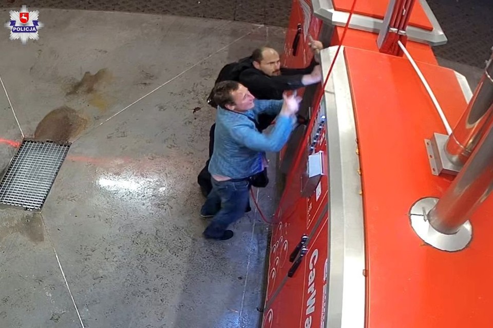 Do włamania doszło 12 listopada br w Puławach. Dwóch sprawców usiłując włamać się do automatów poodginali osłony i uszkodzili maszynę. Spowodowali straty w wysokości ponad 45 tysięcy zł. Całe zdarzenie zarejestrowały zainstalowane na myjni kamery monitoringu. Zwracamy się z apelem do osób, które rozpoznają sprawców tego przestępstwa. Informacje w tej sprawie, można przekazać anonimowo pod nr tel. (81) 889-02-10 lub bezpośrednio do Wydziału Kryminalnego pod nr tel. (81) 889 03 31.