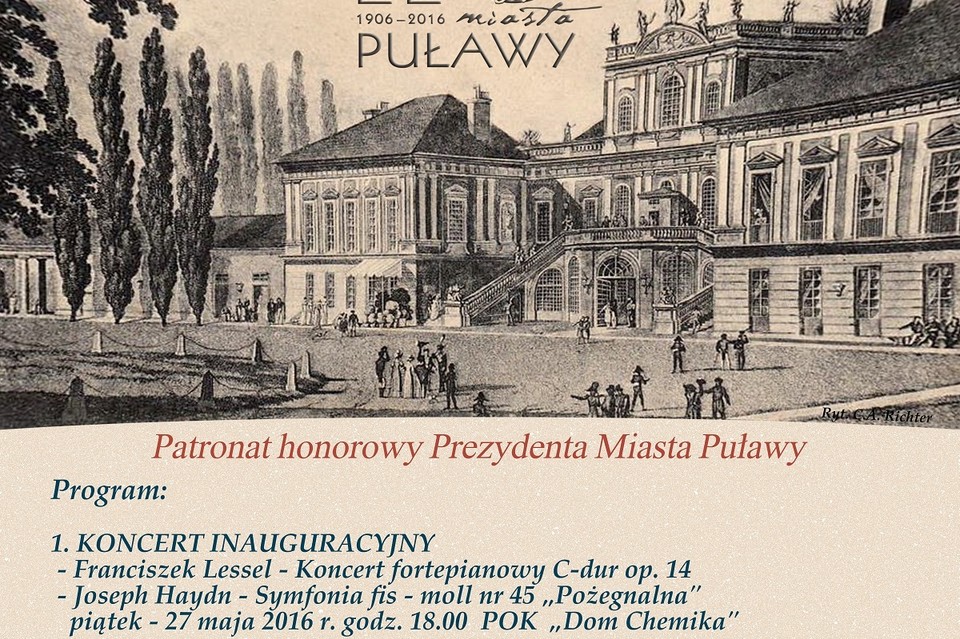 27 maja 2016 r. - Koncert Inauguracyjny: Franciszek Lessel - Koncert fortepianowy C-dur op.14, Józef Haydn - Symfonia fis-moll nr 45 „Pożegnalna”