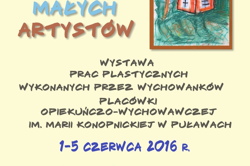 Podczas XIII Małej Galerii Małych Artystów zobaczymy wystawę prac plastycznych wykonanych przez wychowanków Placówki Opiekuńczo-Wychowawczej im. Marii Konopnickiej w Puławach.