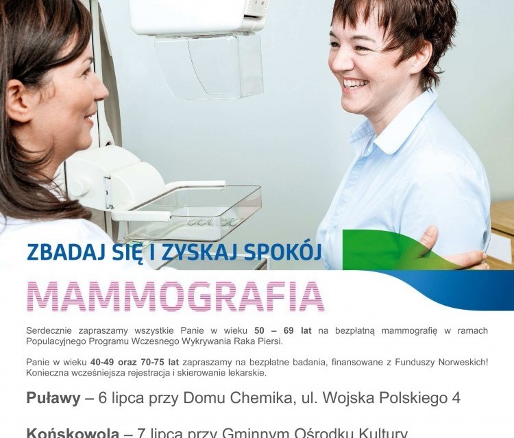 Bezpłatna mammografia skierowana jest dla pań w wieku 50-69 lat, w ramach Populacyjnego Programu Wczesnego Wykrywania Raka Piersi jest bezpłatne.