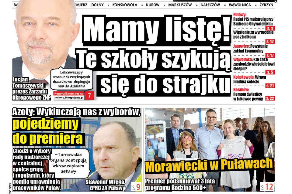 Brak porozumienia między Związkiem Nauczycielstwa Polskiego a Ministerstwem Edukacji doprowadził do sytuacji, że związkowcy wcielają w życie procedury zbliżające ich do przeprowadzenia strajku generalnego. Niedawno w szkołach zakończyły się referenda, w których pracownicy oświatowi w tajnym głosowaniu opowiadali się, czy są za lub przeciw przeprowadzeniu akcji strajkowej. Wyniki w powiecie puławskim nie pozostawiają złudzeń. Nauczyciele chcą strajku. Referendum przeprowadzone było w 60 placówkach. W 54 wynik upoważnia związkowców do strajku.