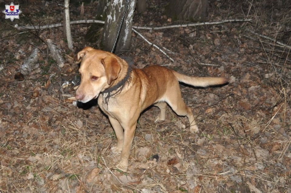 W piątek po południu dyżurny puławskiej komendy został poinformowany o odnalezieniu w lesie psa. Na miejsce, do Kajetanowa w gminie Puławy został skierowany policyjny patrol. Funkcjonariusze ustalili, że zgłoszenia dokonała mieszkanka gminy Puławy, która usłyszała wycie psa dobiegające z pobliskiego lasu. Idąc za głosem zwierzęcia, kobieta znalazła czworonoga przywiązanego łańcuchem do drzewa. Zwierze było głodne i spragnione. Trudno powiedzieć jak długo znajdowało się w lesie.