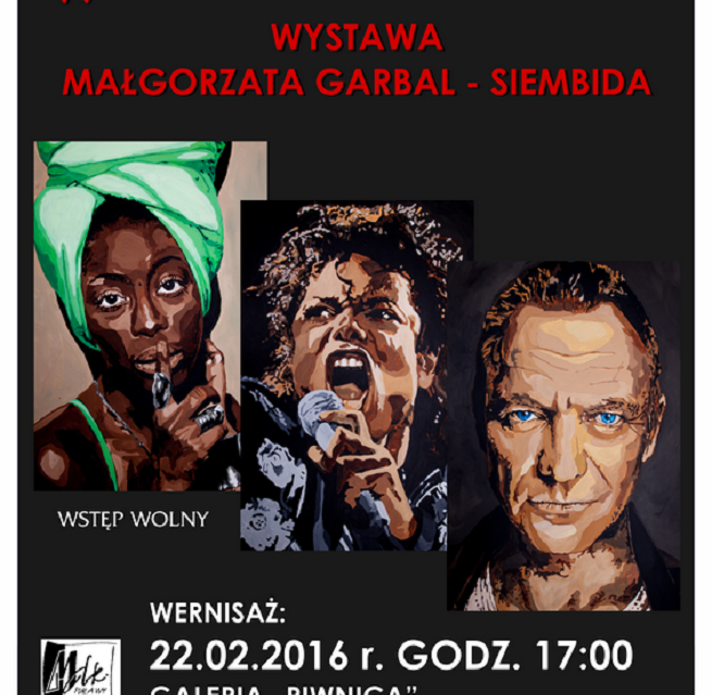 22 lutego (poniedziałek) 2016 r. o godz. 17:00 w Galerii "Piwnica". Wystawę można będzie oglądać do 14 marca 2016 r. Wstęp wolny.