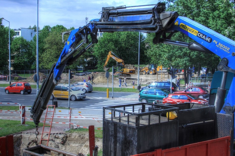 W tym momencie trwają tam prace związaną z instalacjami kanalizacyjnymi, które będą się znajdować pod nowo wybudowaną ulicą, która stworzy łącznik z ulicami Lubelską i Grota-Roweckiego.