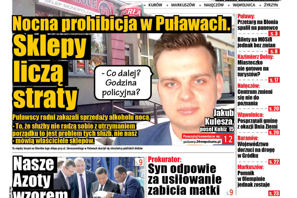 - Z tego, co mówią mieszkańcy, w pobliżu sklepów dzieją się złe rzeczy, niektórzy mówią o gehennie. To trudny temat i rozumiem skargi mieszkańców, ale zamknięcie sklepów nie jest rozwiązaniem. Godzi to w mieszkańców. Nie może być tak, że my radni jako piewcy moralności chcemy decydować o kolejnym aspekcie życia puławian. Nie wyobrażam sobie, żeby w 47 tys. mieście nie można było o dowolnej porze kupić tego co się chce - stwierdził Maj, na co odpowiedział mu Ireneusz Rzepkowski. Nowy szef klubu PiS pozwolił sobie na złośliwość.