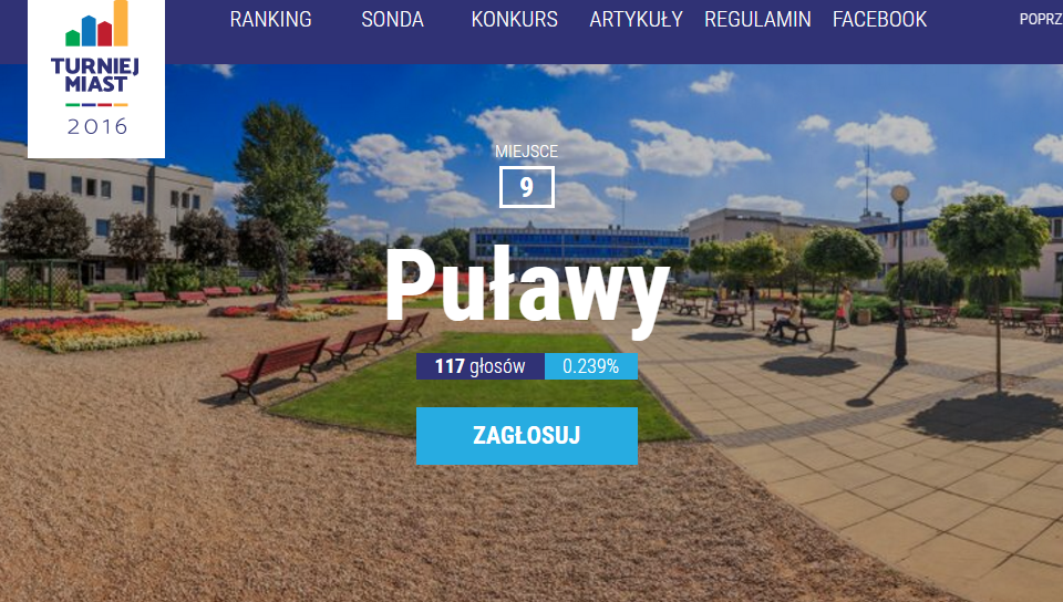 Na tą chwilę Puławy zajmują 9 miejsce z wynikiem 117 głosów (stan na 11 października).