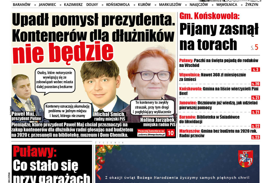 Pomysł postawienia w mieście kilku kontenerów mieszkalnych, do których eksmitowani byliby najbardziej zatwardziali i niepodejmujący działań dłużnicy-lokatorzy mieszkań komunalnych, prezydent Paweł Maj zapowiedział już kilka miesięcy po objęciu urzędu. Jak wtedy tłumaczył, do rozważenia takiego kroku skłoniło go niewielkie zainteresowanie programem odpracowywania długów (11 osób z 430 zadłużonych – dane z marca). Kontenery to element polityki Pawła Maja w walce z zadłużeniem mieszkańców wobec miejskich spółek – Nieruchomości Puławskich, OPEC, MPWiK. Jej pierwsze efekty to zmniejszenie długów czynszowych o 123 tys. zł w ciągu trzech kwartałów br. W ramach prezydenckiego programu 21 osób odpracowało łącznie około 85 tys. zł. Pomysł budowy kontenerów nabrał realnych kształtów w projekcie budżetu miasta na 2020 rok – na ten cel zaplanowano 350 tys. zł.