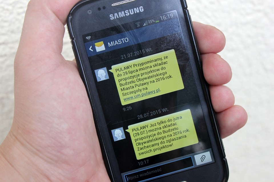 SMS-owy system powiadamiania mieszkańców ruszył w Puławach z początkiem 2013 roku. Od tej pory do Puławian wysłanych zostało 138 wiadomości. Grono blisko 3,5 tysiąca odbiorców podzielone jest na trzy kategorie, z których największym zainteresowaniem cieszą się SMS-y dotyczące wydarzeń w mieście, które docierają do 1237 mieszkańców. Druga pod względem liczebności jest kategoria komunikaty lokalne, z której korzysta 1183 mieszkańców, a z trzeciej pod nazwą zarządzanie kryzysowe do tej pory skorzystało 985 osób. Biorąc pod uwagę, że Puławy liczą niespełna 50 tysięcy mieszkańców, to liczba korzystających nie wygląda zbyt imponująco, ale urzędnicy z tego rozwiązania są częściowo zadowoleni.