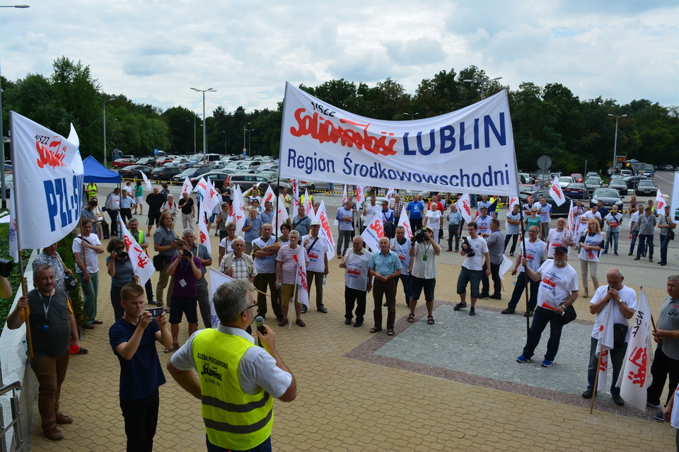 Pikieta rozpoczęła się w środę po godz. 13 i potrwała półtorej godziny. Manifestacja odbywała się przed siedzibą dyrekcji Grupy Azoty Puławy. Było bardzo głośno za sprawą zagłuszających trąbek i syren. Związkowcy domagali się zrealizowania przez zarząd 3 postulatów: natychmiastowego przywrócenia do pracy zwolnionego związkowca, przestrzegania ustawy o związkach zawodowych i zaprzestania utrudniania działalności związkowej, respektowania zapisów układu zbiorowego dotyczących m.in. dostępu do radiowęzła. Postulaty przekazano zarządowi. Teraz związkowcy czekają do piątku - jeśli żądania nie zostaną uwzględnione, zapowiadają kolejne działania.
