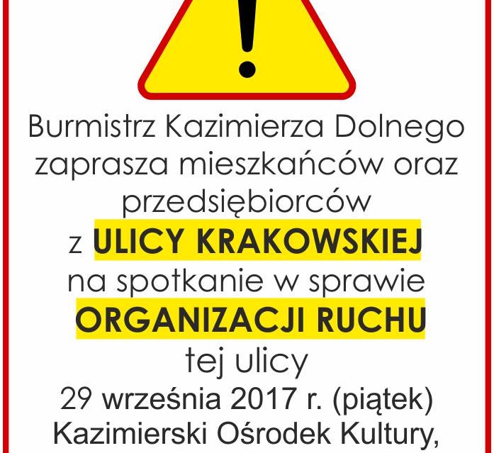 KulturaBurmistrz Kazimierza dolnego zaprasza na spotkanie w sprawie organizacji ruchu na ul. Krakowskiej.