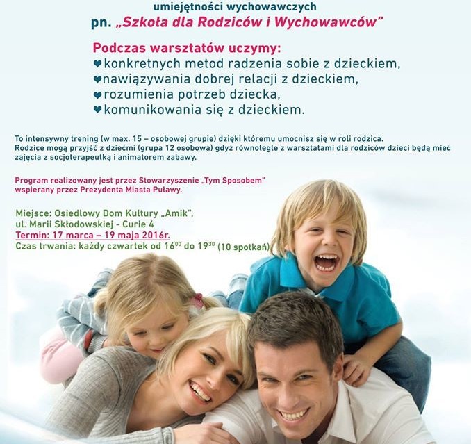 Warsztaty skierowane są dla rodziców dzieci w wieku 6-12 lat