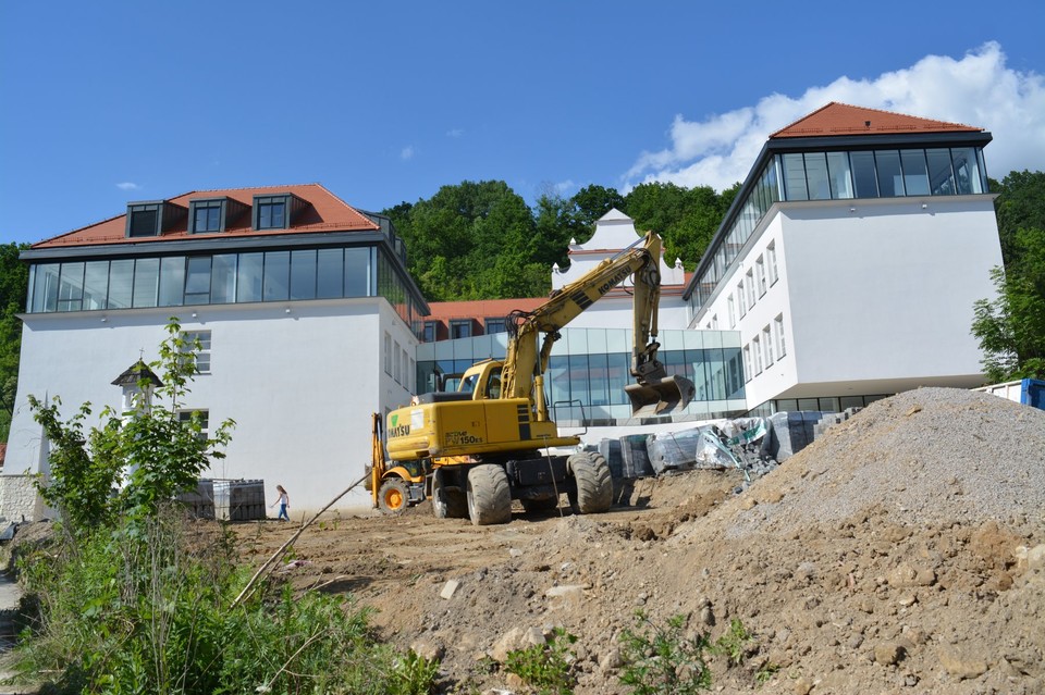 Spodziewany termin oddania szkoły to czerwiec/lipiec. Na razie trwają prace na placu przed szkołą.