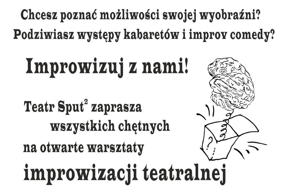 KulturaTeatr Sput2 zaprasza wszystkich chętnych na otwarte warsztaty improwizacji teatralnej do Puławskiego Ośrodka Kultury "Dom Chemika".