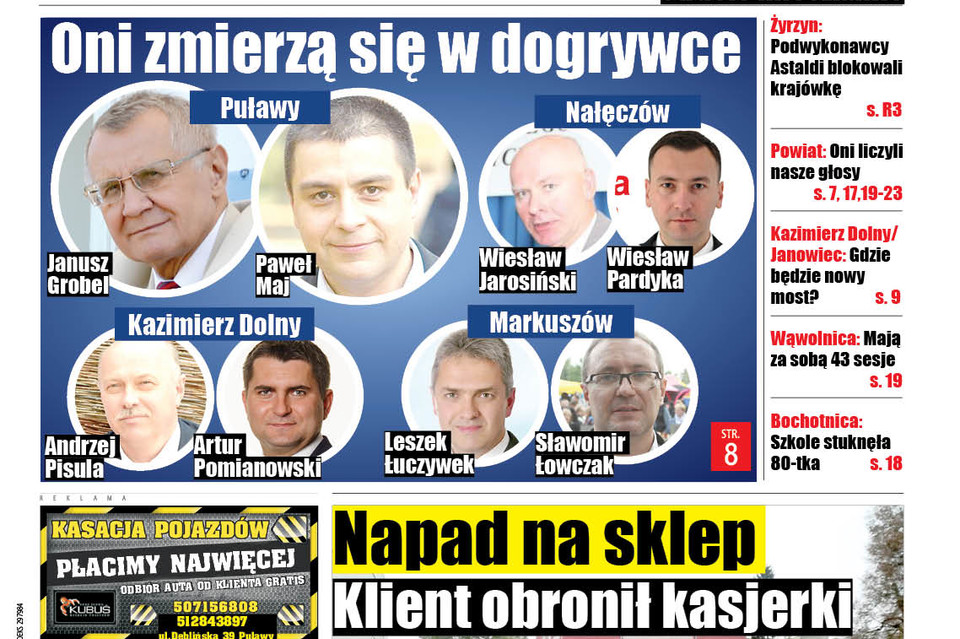 W Puławach za dwa tygodnie przyjdzie zmierzyć się najprawdopodobniej obecnie urzędującemu Januszowi Groblowi i radnemu Pawłowi Majowi. Do momentu zamknięcia tego numeru Wspólnoty wciąż spływały dane z obwodowych komisji wyborczych. Obaj kandydaci zdobyli powyżej 30% głosów, z przewagą Janusza Grobla.