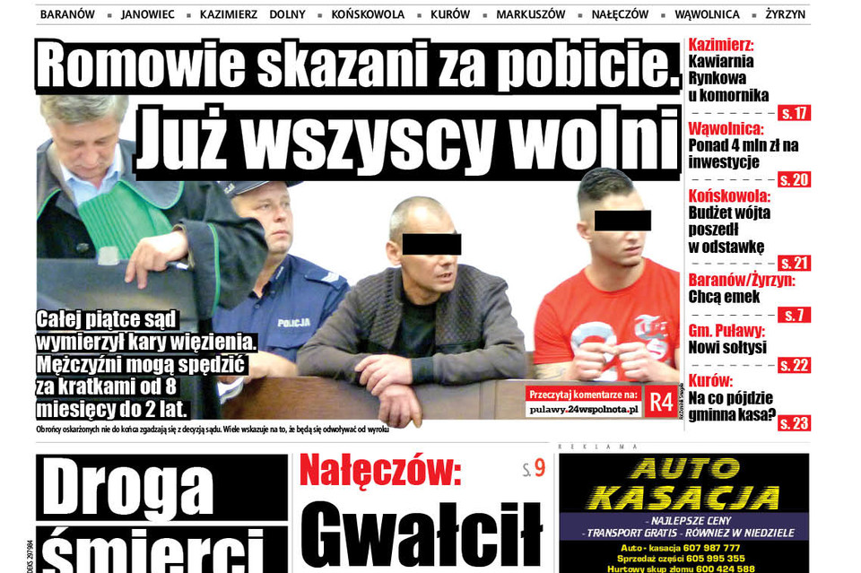 Sprawa zakończyła się w ubiegły piątek, 4 stycznia, w Sądzie Okręgowym w Lublinie. Na ogłoszeniu wyroku w sali sądowej pojawiła się czwórka z piątki oskarżonych. Doprowadzeni w kajdankach przez policjantów z aresztu zostali Dawid D. i Marcin D., uznani przez sąd za najbardziej agresywnych w zajściu. Przebywali za kratami od marca ub. r. Obaj byli ubrani w bluzy z kapturem, mieli starannie ułożone fryzury. Zachowywali się spokojnie, spuścili głowy i patrzyli w podłogę. Gdy byli wyprowadzani z sali rozpraw, jednego z nich ucałowała kobieta narodowości romskiej, która wraz z dwiema towarzyszkami przysłuchiwała się ogłoszeniu wyroku.