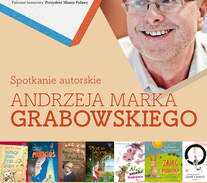 - środka, 27 kwietnia 2016 r. o godz. 9:00 i 11:00 w Bibliotece Miejskiej- spotkanie autorskieAndrzeja Marka Grabowskiego