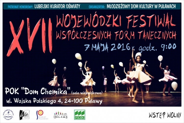Festiwal odbędzie się w sobotę, 7 maja 2016 r. o godz. 9:00 w sali widowiskowej POK "Dom Chemika". Wstęp wolny.