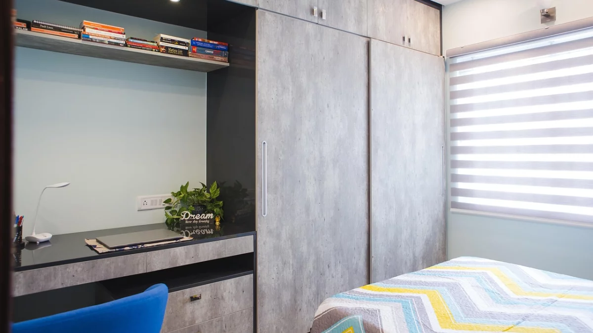 - Zamknięte nisze i pudełka działają jako tło bez tworzenia niepotrzebnych akcentów.