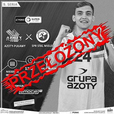 W związku z przypadkami COVID-19 wykrytymi wśród zawodników zawodników drużyny Azoty-Puławy, Superliga Sp. z o.o. informuje, że mecz Azoty-Puławy – Stal Mielec zaplanowany na 8 listopada, zostaje przełożony.