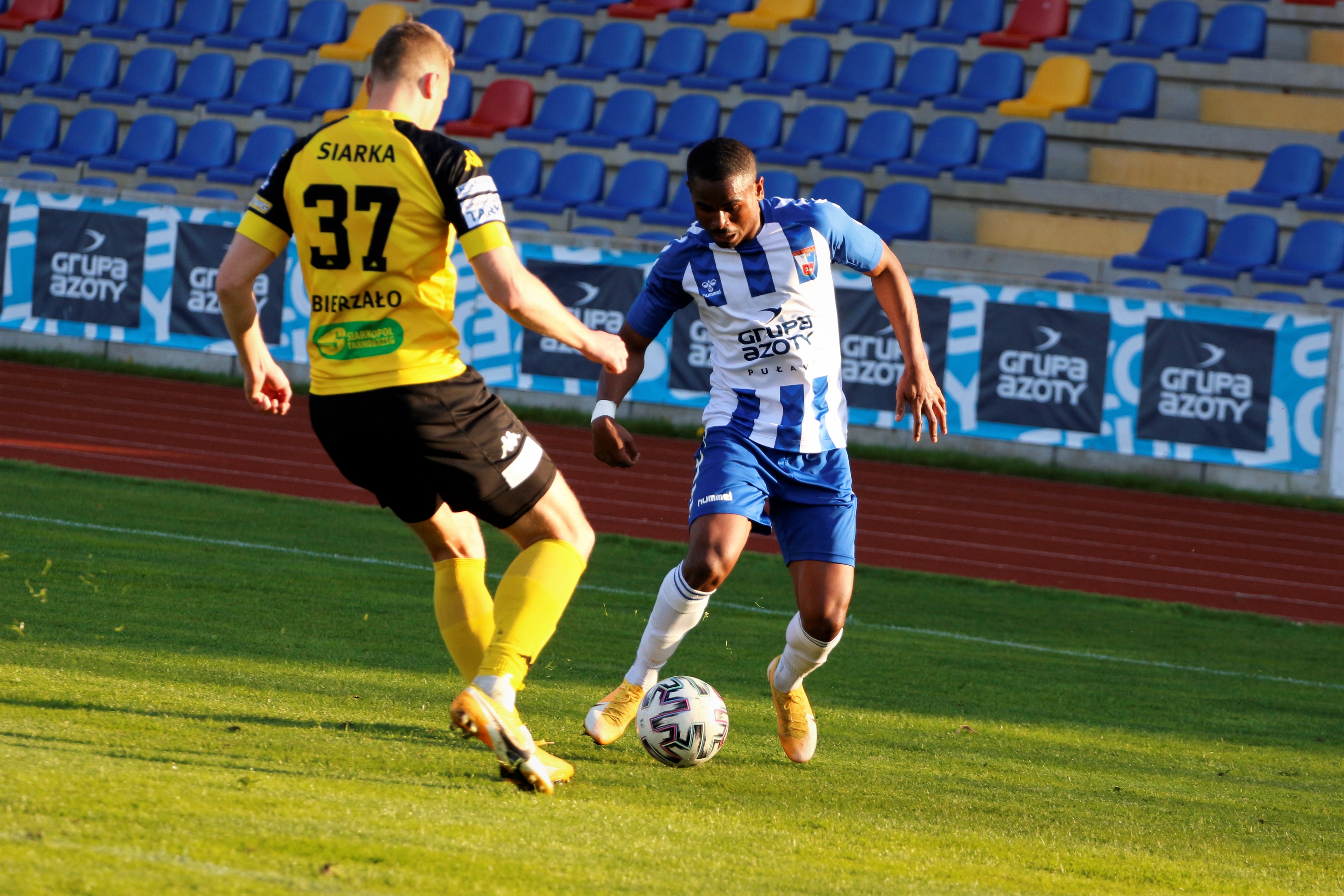 Samo spotkanie nie było wielkim widowiskiem. Siarka cofnięta głęboko na własną połowę skupiła się na defensywie, rzadko kiedy wychodząc z własnej połowy. Obrońcy przyjezdnych grali blisko siebie i trudno było naszemu zespołowi znaleźć miejsce do oddania strzału. W 7. minucie z prawej strony dośrodkował Dominik Cheba, a stojący na jedenastym metrze Krystian Puton nieczysto trafił w piłkę. Dwukrotnie w niezłych sytuacjach znajdował się w polu karnym Adrian Paluchowski, ale brakowało precyzji przy opanowaniu piłki w jedenastce rywali.