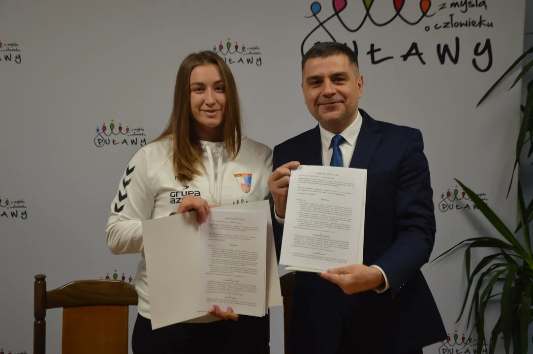 - Malwina Kopron to nasza duma, ambasadorka Puław. Jestem dumny, że miasto może ją wspierać. Podpisaliśmy kolejną umowę sponsoringową na wsparcie w przygotowaniach do startów w barwach Wisły Puławy - mówi Paweł Maj, prezydent Puław.