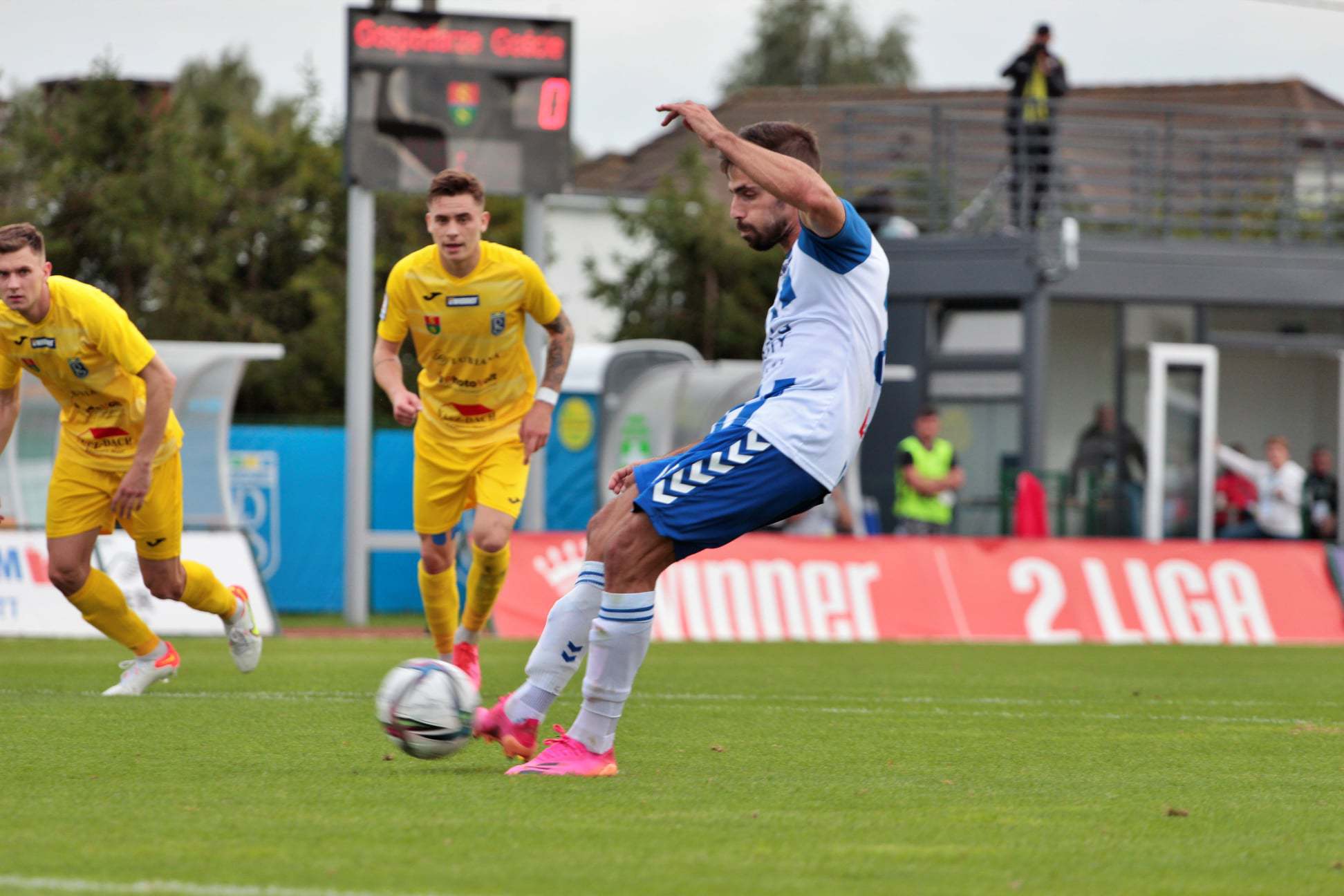 Gdy wydawało się, że pierwsza część zakończy się remisem, drugą asystę zaliczył Bartosiak. Piłkę otrzymał Carlos Daniel. 27-letni Portugalczyk uderzył z powietrza do siatki. Był to dla niego czwarty gol w sezonie. Carlos jest drugim najlepszym strzelcem zespołu, z siedmioma bramkami przewodzi Adrian Paluchowski.