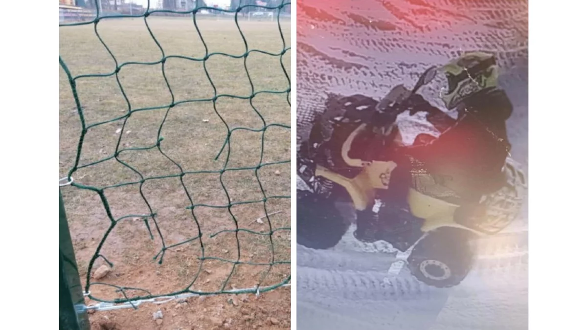 Kilka dni temu nieznana osoba poruszała się quadem po zaśnieżonej murawie. Wczoraj została założona nowa siatka na piłkochwycie za jedną z bramek. Dzisiaj rano przedstawiciele klubu zauważyli, iż jest już poprzecinana.