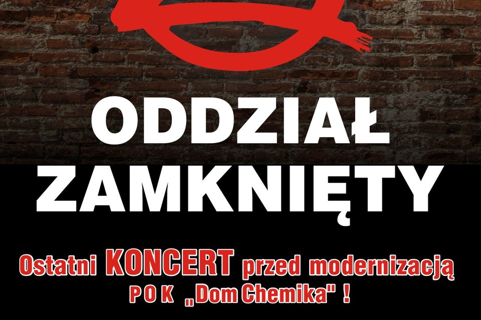 Na koncercie Oddziału Zamkniętego nie może zabraknąć nikogo kto chciałby wziąć udział w tym wyjątkowym wydarzeniu! Będzie to ostatni przed modernizacją obiektu koncert w Puławskim Ośrodku Kultury „Dom Chemika”.