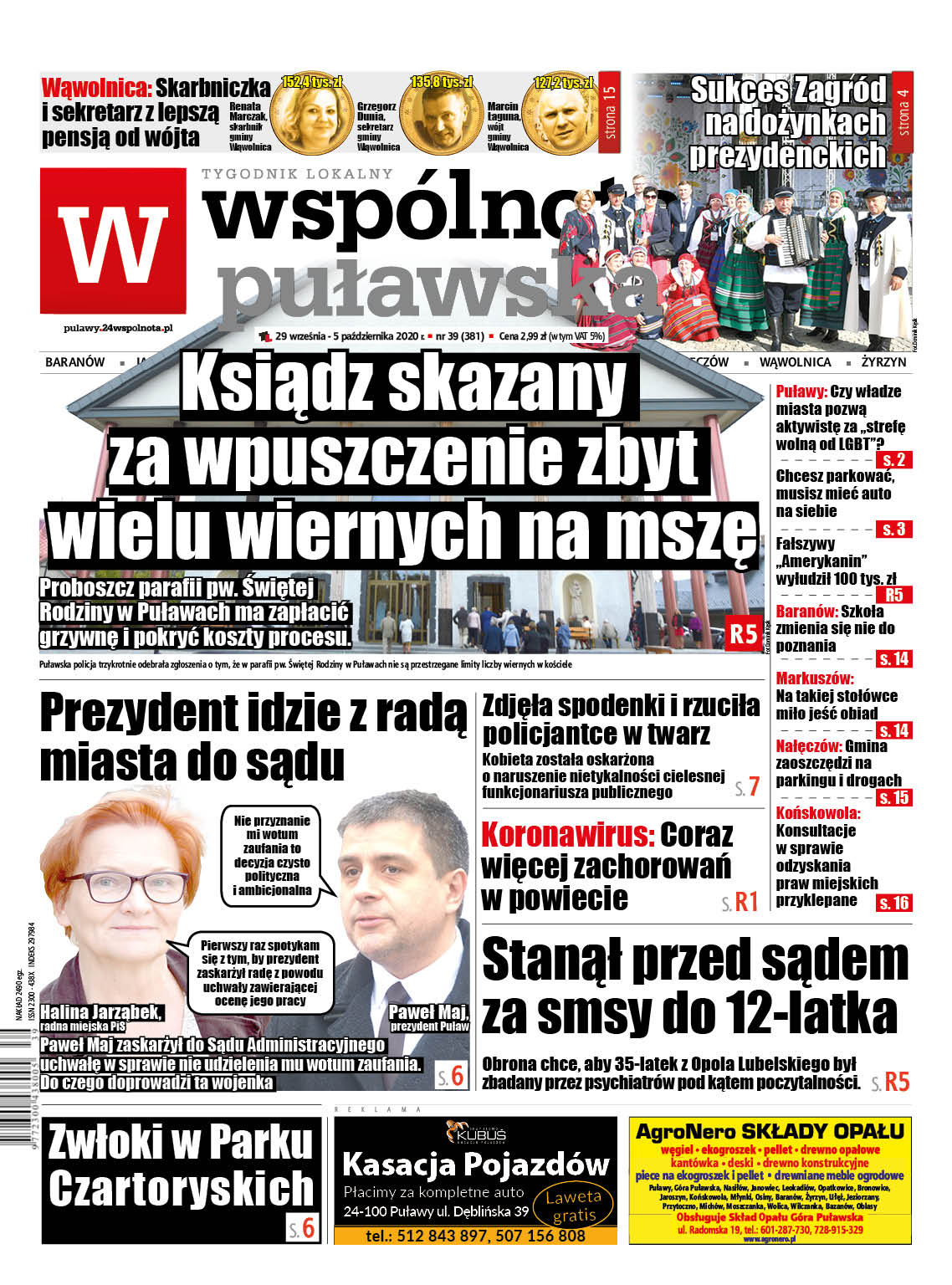 – Proboszcz został ukarany wyrokiem Sądu Rejonowego w Puławach za to, że w dniach 8 kwietnia i 13 maja odprawiając mszę św. dopuścił do przebywania w kościele większej ilości osób niż dopuszczalna. Jest to czyn z art. 54 kodeksu wykroczeń. Karą jest grzywna wraz z opłatą procesową. Proboszcz wyroku sądu wydanego w imieniu Rzeczypospolitej Polskiej, czyli w imieniu nas wszystkich, nie zamierza w żaden sposób komentować. Wyrok wykona! – czytamy w ogłoszeniach.
